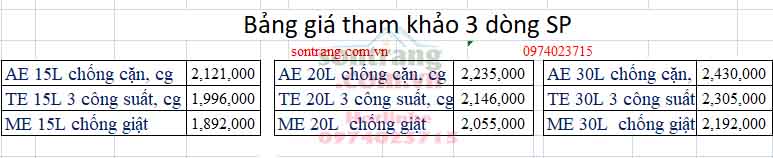 - Trọng lượng tịnh: 15L: 10kg 20L: 10.5kg 30L: 12.5kg