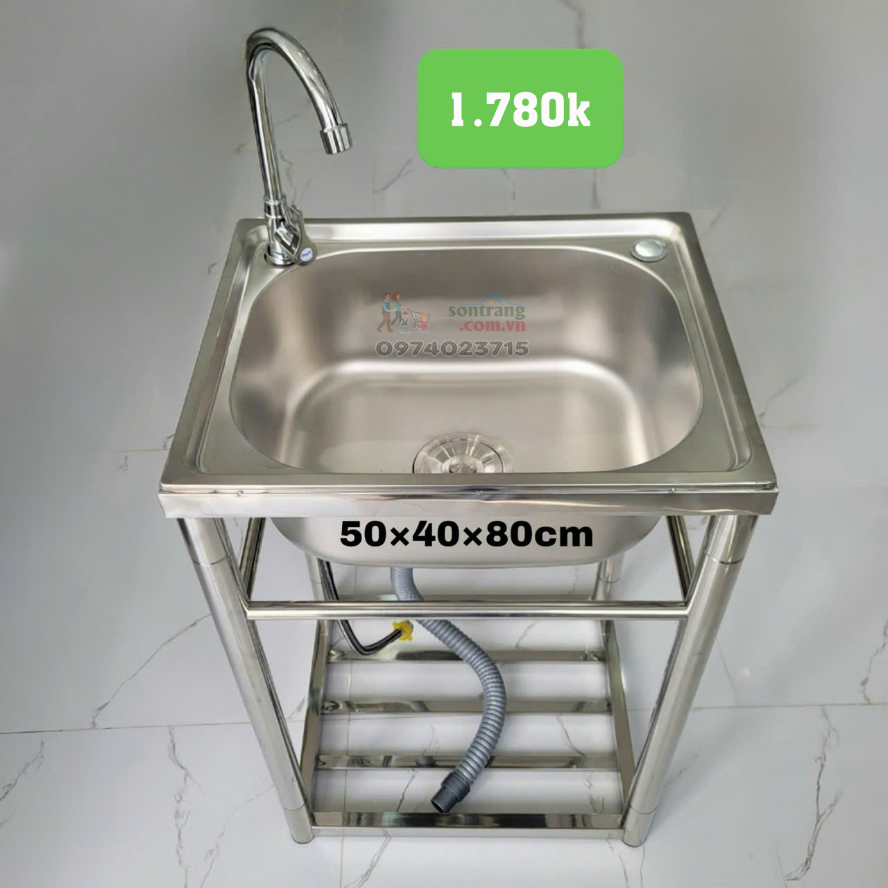✔ 1 chậu rửa bát đơn – Kích thước 400x500x800mm.