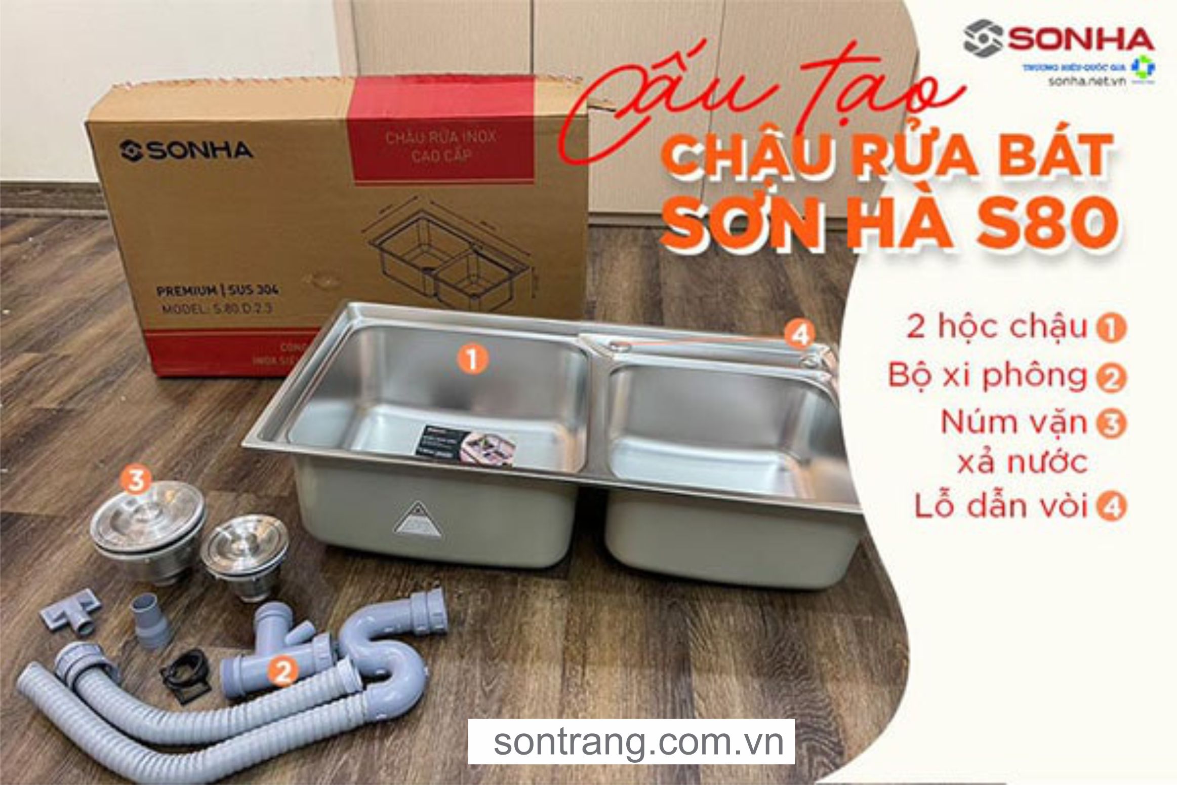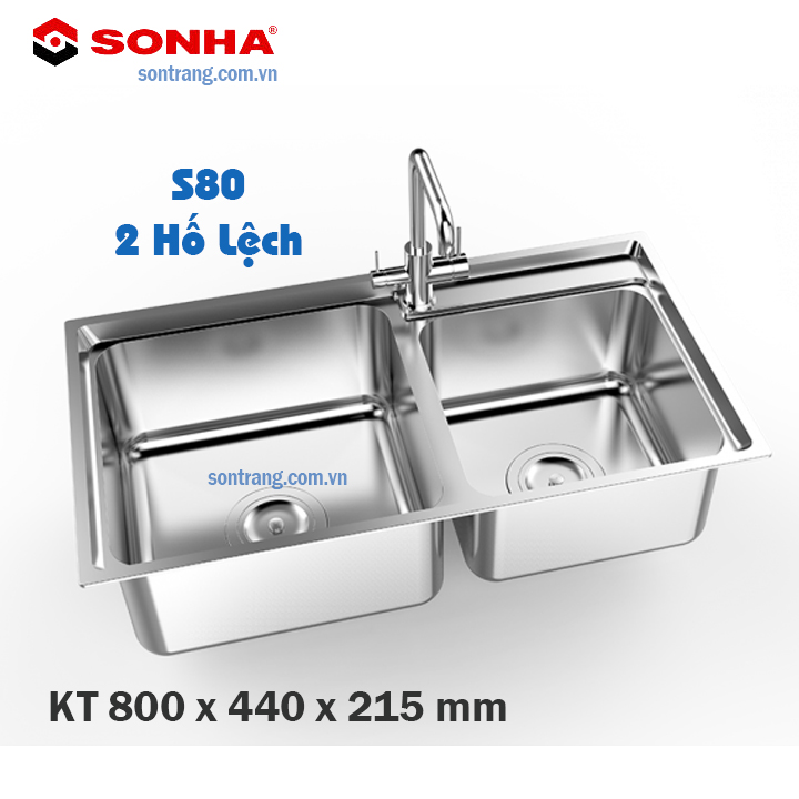 Chậu rửa bát inox cao cấp SƠN HÀ S80 (2 Hố Lệch)