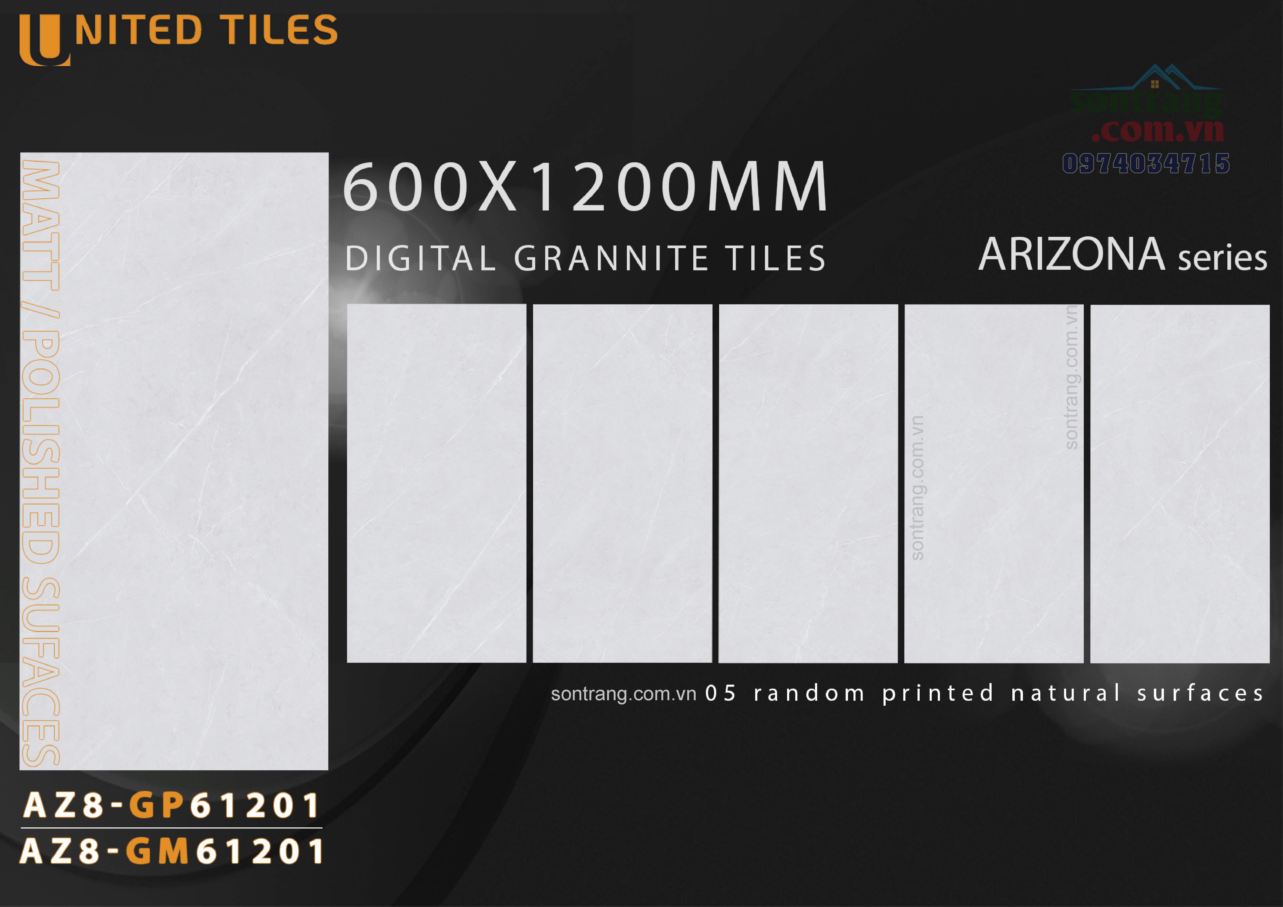 Đa Dạng Kích Thước và Bề Mặt: Gạch lát nền 60x120 Arizona thuộc nhóm sản phẩm AZ8 với 3 loại kích thước và 2 loại bề mặt (matt mịn và bóng), random 5 faces mang đến sự độc đáo và phong cách tự nhiên.
