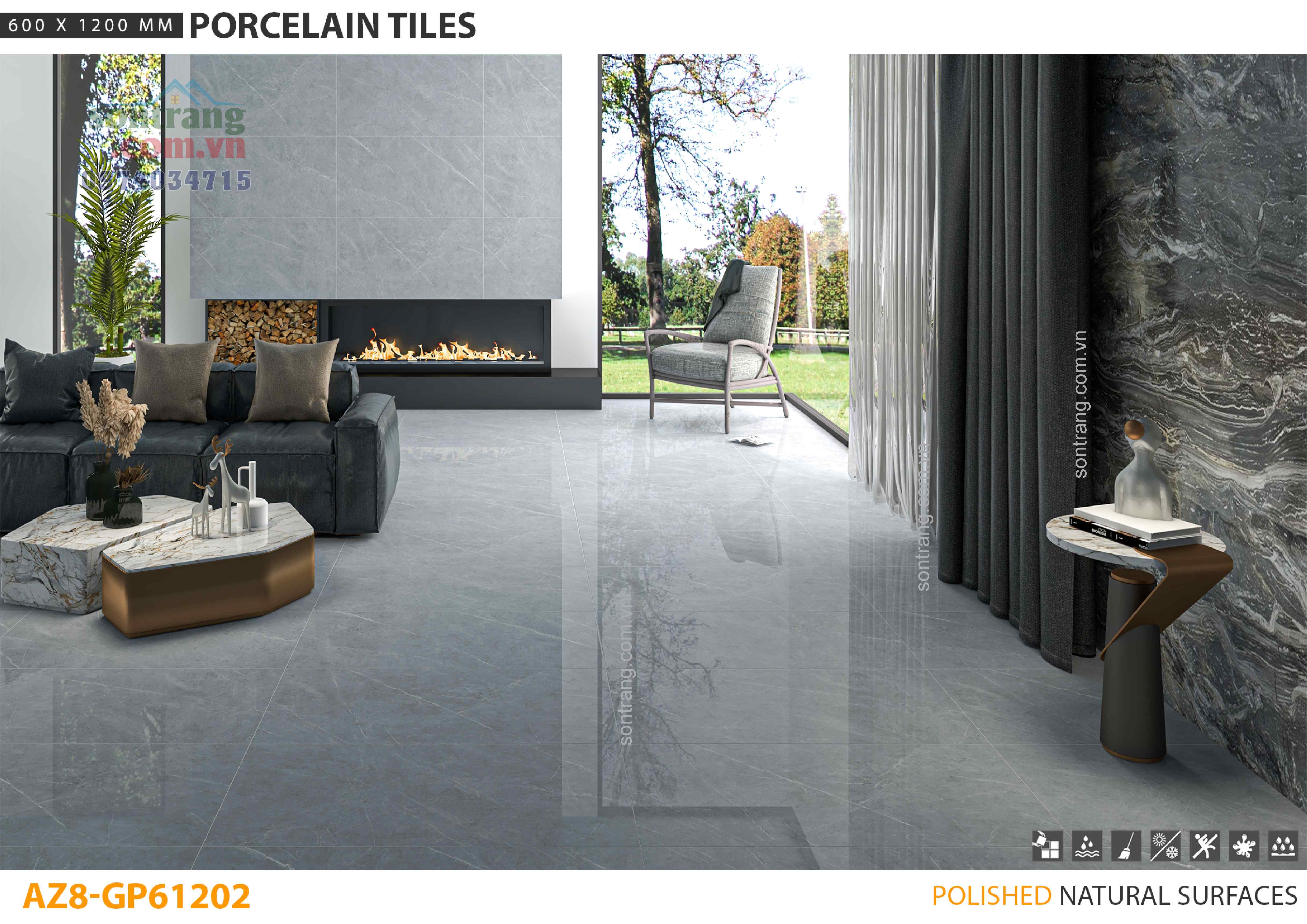 Trọn bộ gạch men bóng khổ lớn 600x1200mm