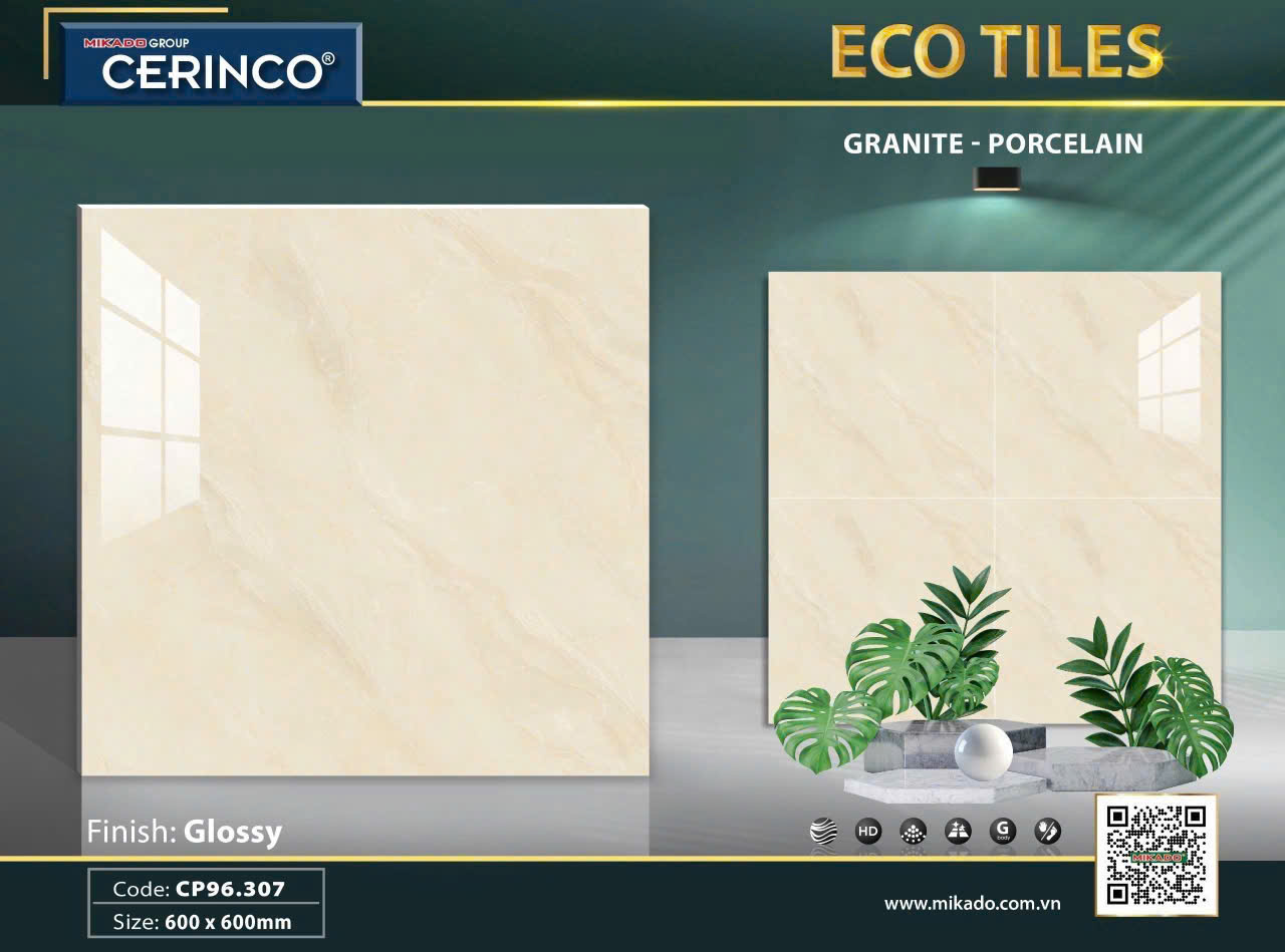 Tên sản phẩm: Gạch Porcelain ECO Mikado CP96.307 Men Bóng
