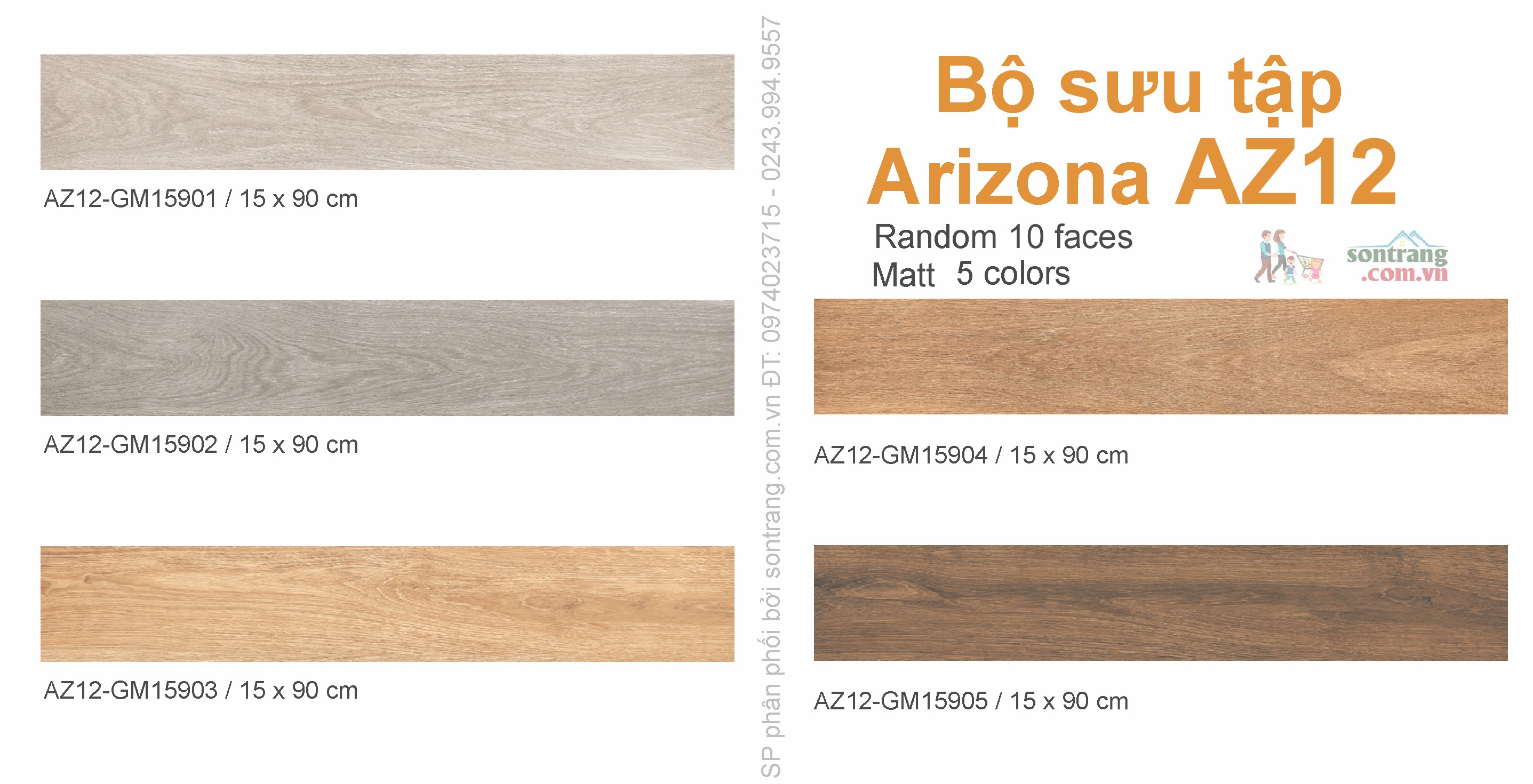 Vân Gỗ Đa Dạng: Thuộc nhóm sản phẩm AZ12 Arizona với 5 màu vân gỗ, gạch có random 10 faces mang đến sự độc đáo và đa dạng.