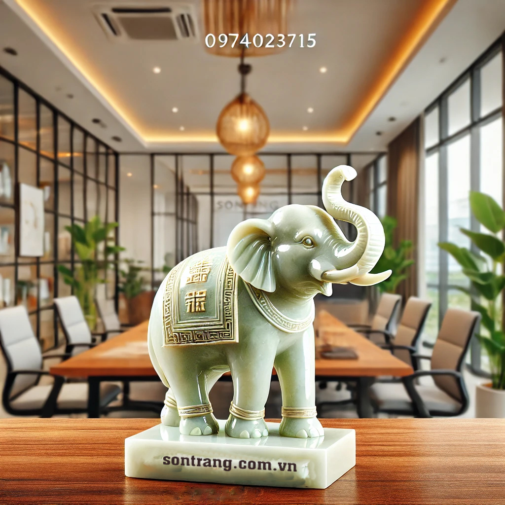 Tượng voi bằng ngọc: Tăng vượng khí và sự bền vững trong tài vận.